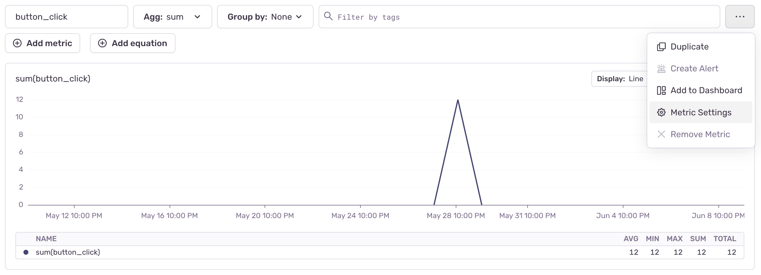 The Metrics settings page allows you to see and manage the metrics emitted within a project all in one place. You can access it by navigating to your project settings and selecting Metrics from the left sidebar.