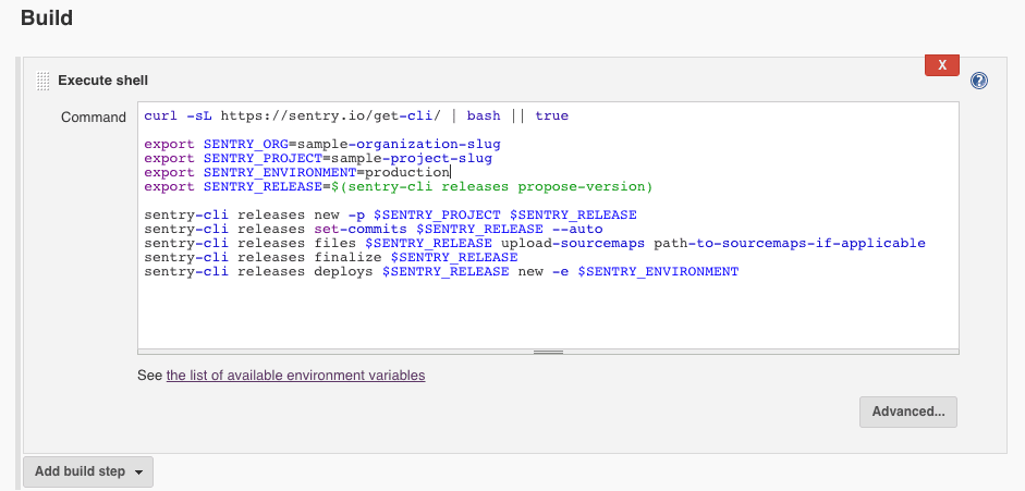 This guide walks you through the process of automating Sentry release management and deploy notifications in Jenkins. After deploying in Jenkins, you’ll be able to associate commits with releases. You'll also be able to apply source maps to see the original code in Sentry.
